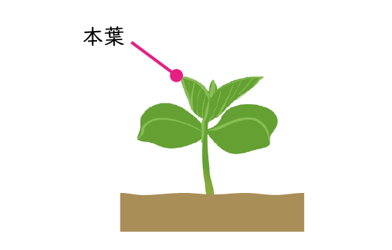 種まき後4~6日で発芽する。本葉が出たら、4粒まいた種のうち、しっかりとした芽を2本を残して間引く。